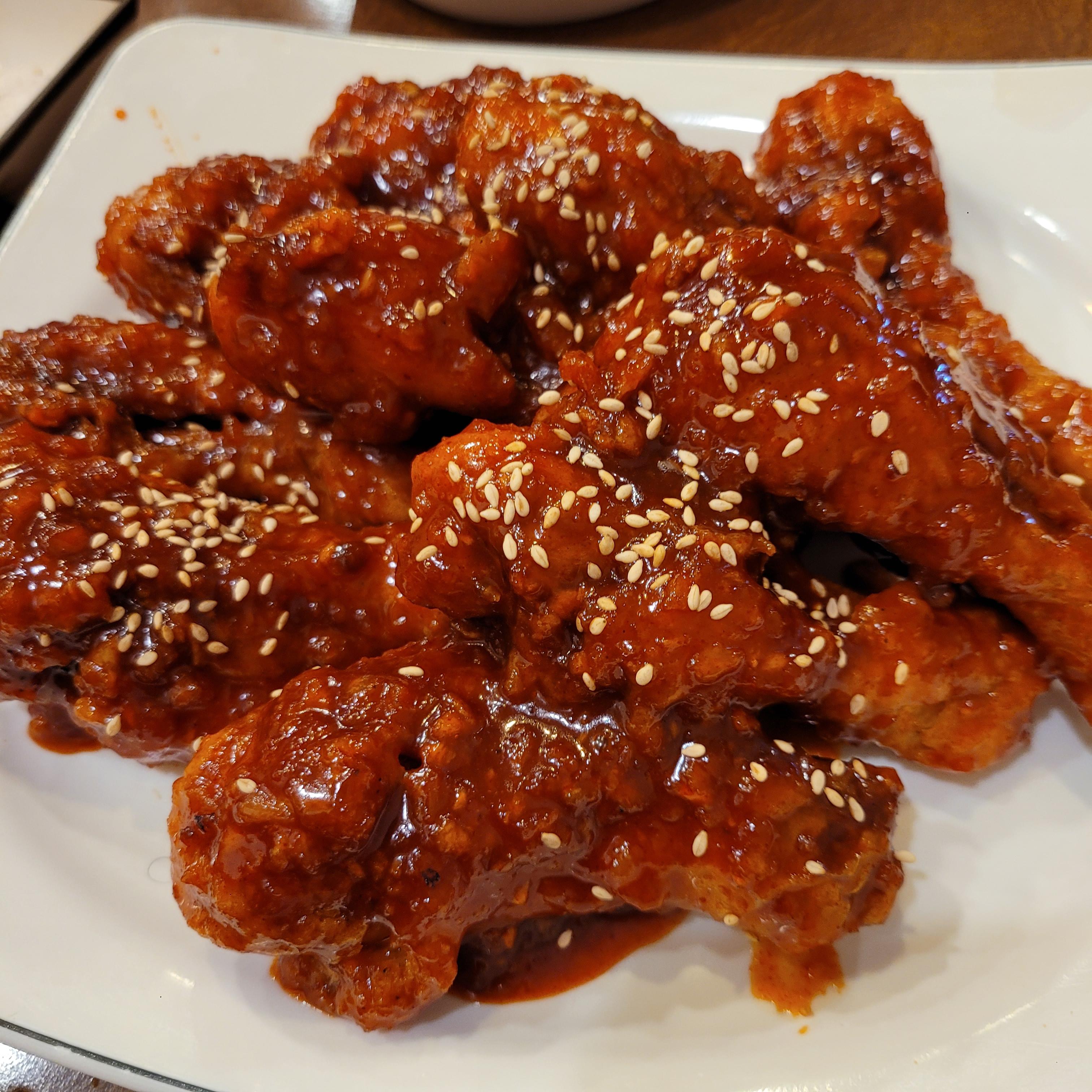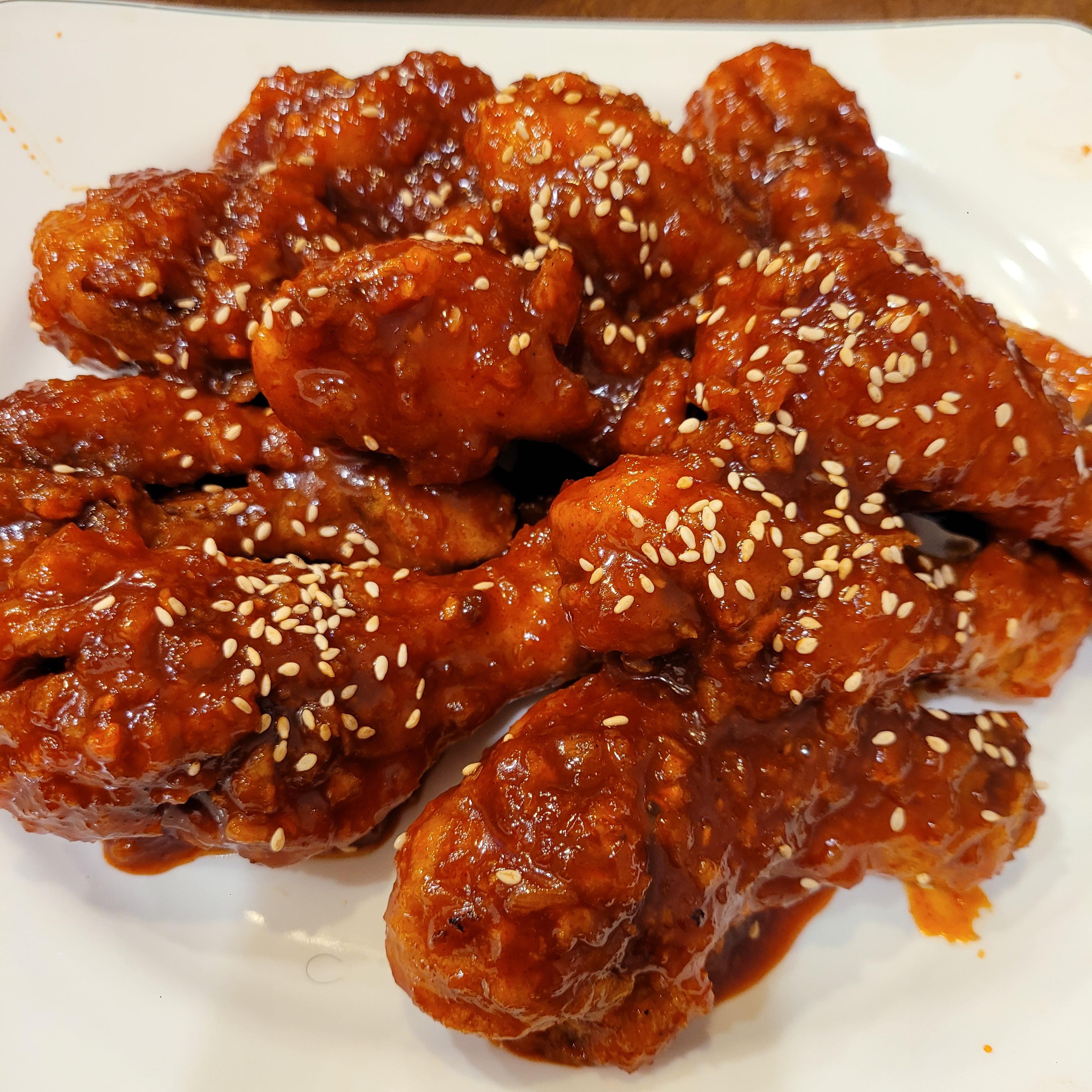 그리고 두번 째로 시킨 다리 양념이에요. 첫 주문은 저희밖에 없어서 바로 나왔는데, 이 이후에는 손님이 많아져서 대기가 정말 길었어요. 그리고 처음보다는 많이 튀겨져서 나와서 처음만큼의 감동은 없었지만 정말 맛있었어요.